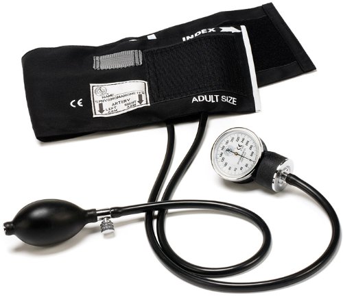 Tensiometro manual, con un manometro de 0 mmHg a 300 mmHg, y una exactitud de 3 mmHg.